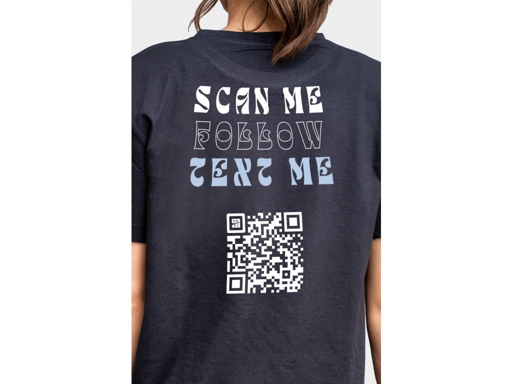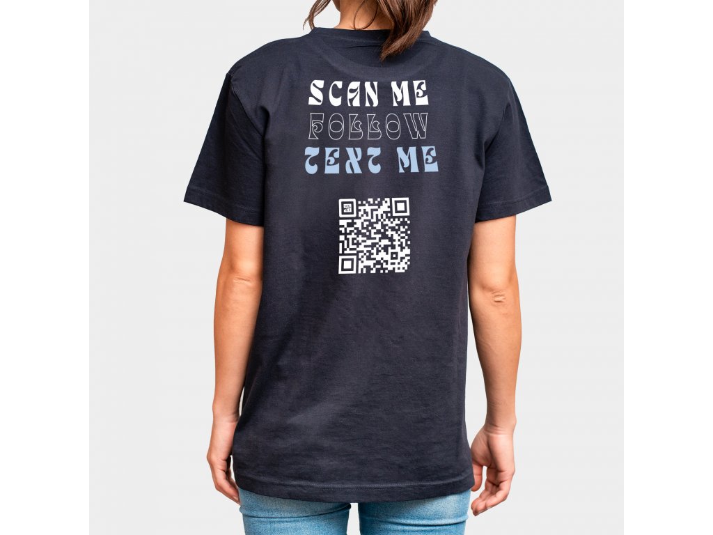Bavlněné tričko s QR kódem pro každodenní nošení, které kombinuje jednoduchý, ale výrazný design s jasnou zprávou SCAN ME, FOLLOW ME, TEXT ME. Ideální volba pro ty, kteří rádi komunikují a navazují nová přátelství prostřednictvím moderní technologie. Buďte připraveni na nové interakce a objevujte nové možnosti, kdekoliv jdete.